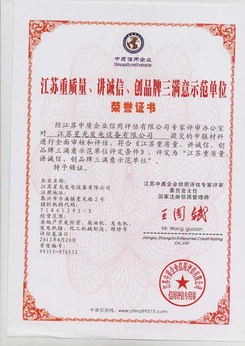 江蘇重質量、講誠信、創(chuàng)品牌三滿意示范單位榮譽