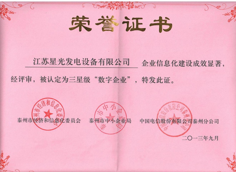 三星級“數字企業(yè)”榮譽證書、泰州市誠信單位榮